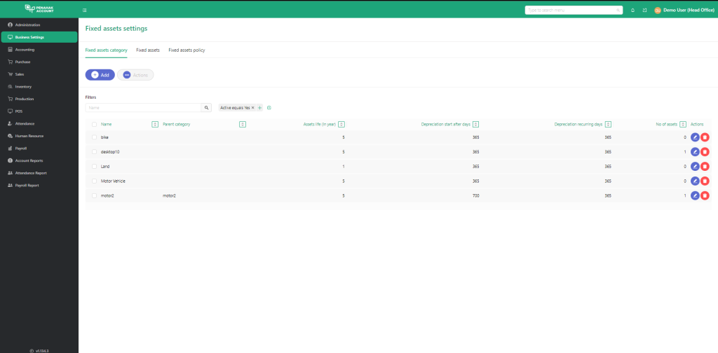 Centrally manage your business’s fixed assets. That means easier tracking and reporting of asset information including purchase detail, warranty information, location / employee assigned to it, schedule of depreciation and current value for reporting and taxation purposes..